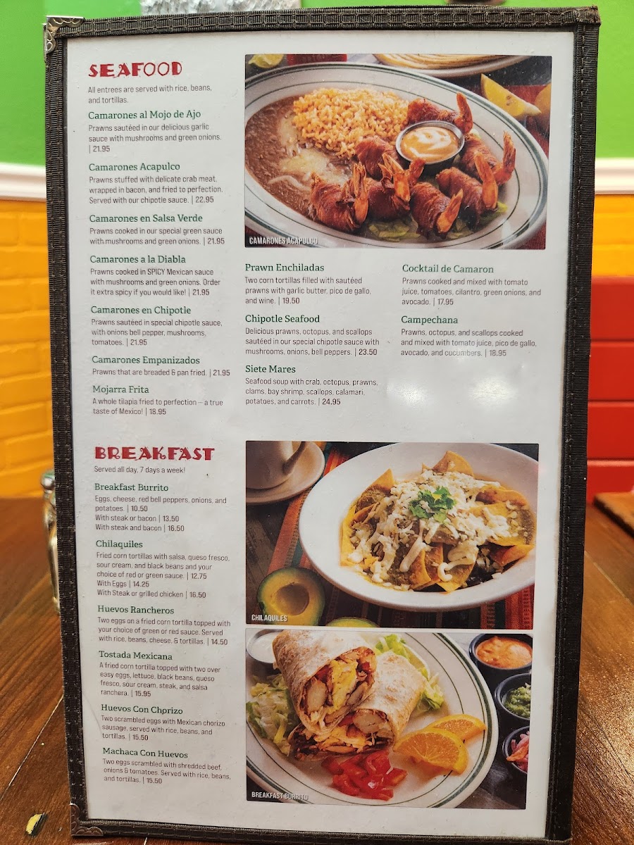The seafood selections here are standout—particularly the Camarones Al Mojo De Ajo, where garlic-infused prawns mingle with mushrooms and green onions, or the fiery Camarones A La Diabla for those who crave bold heat. Prawn enchiladas and the Siete Mares seafood soup offer a flavorful dive into coastal Mexican cuisine, showcasing fresh ingredients cooked to perfection.